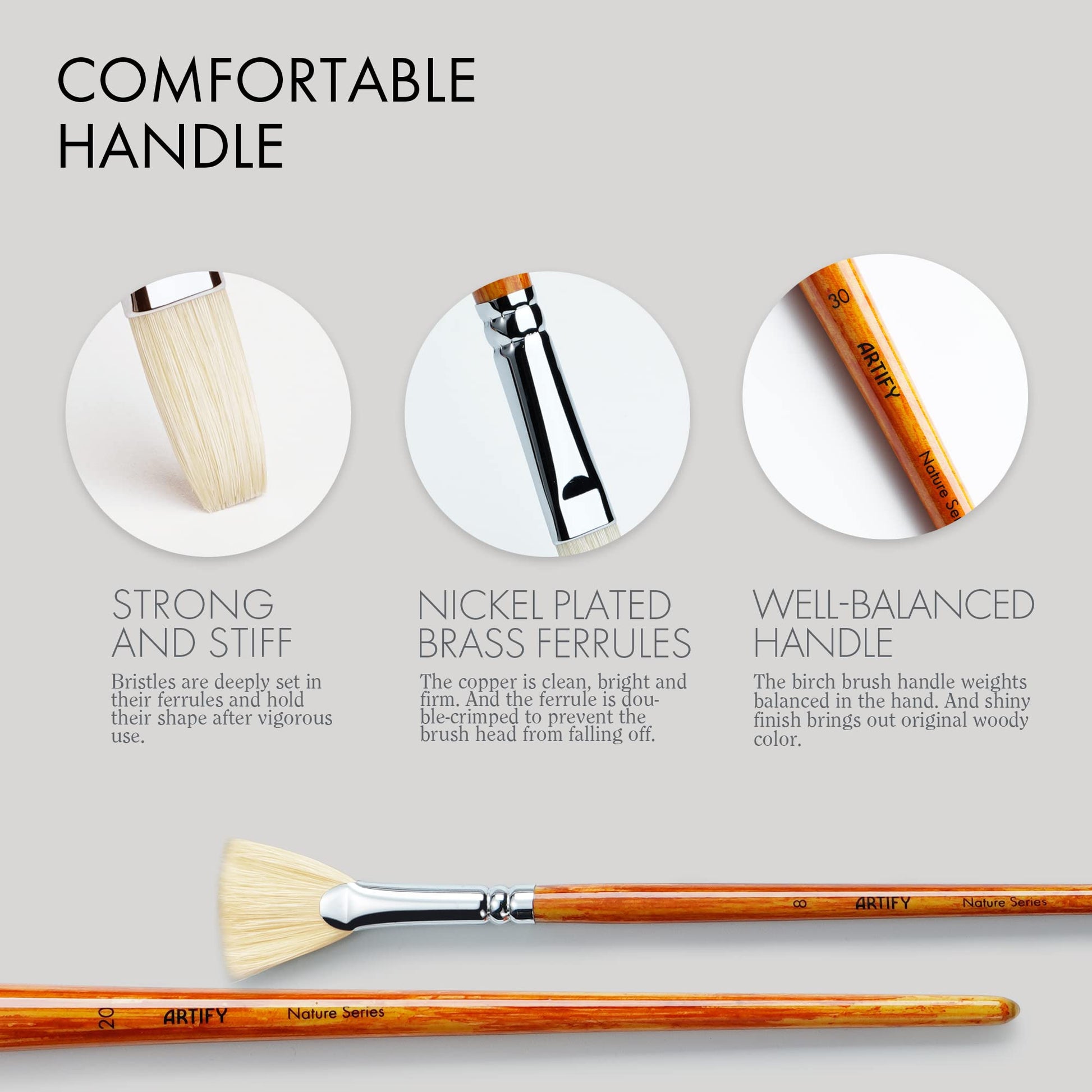 - NATUARL WOOD COLOR HANDLES - Our fine artist brushes are individually handmade with luxury wood color handles and white coppers protective ferrules, and are fashioned by skilled brush makers. This set represents the natural beauty, which contributes to our lives and gives us hope and inspiration.