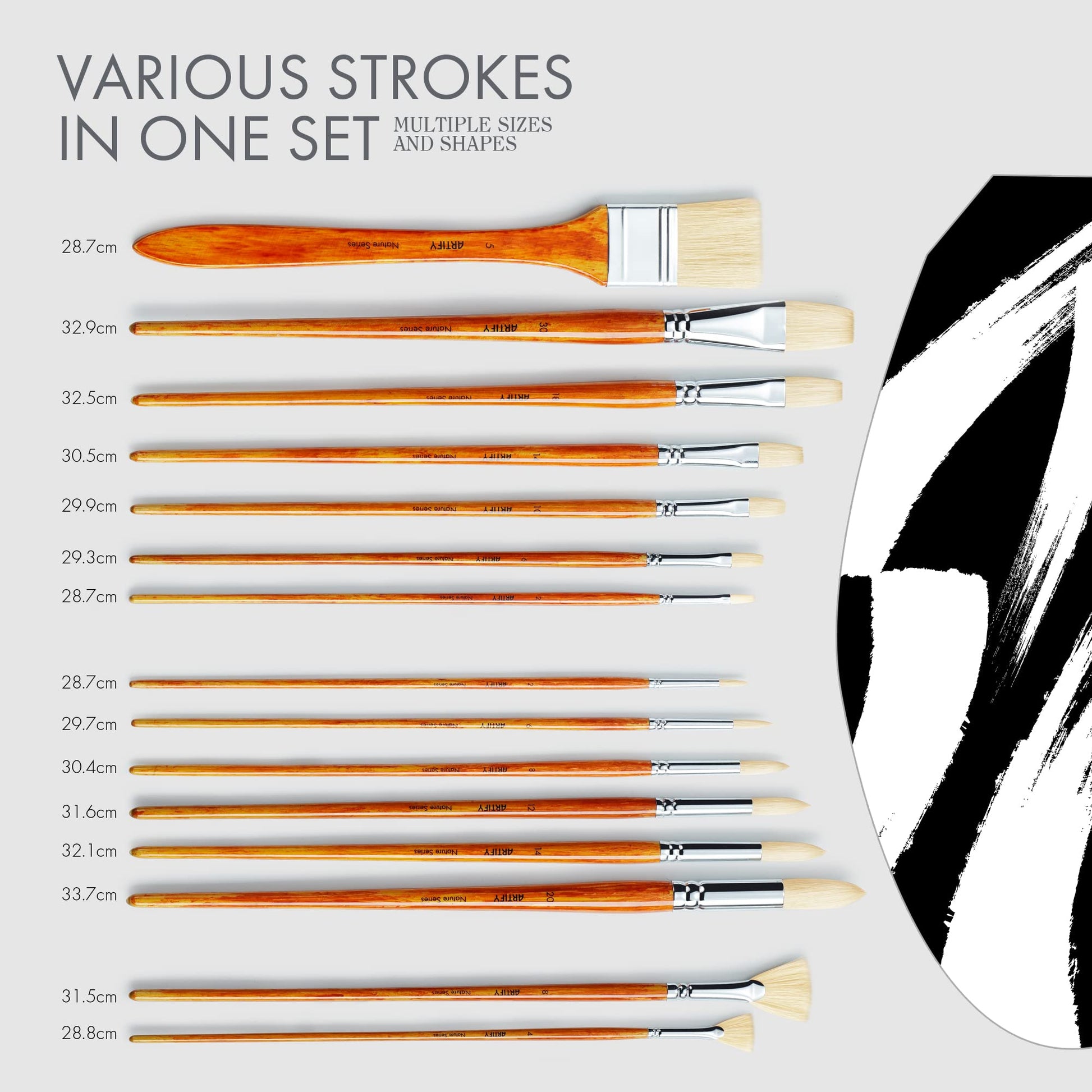 Professional Hog Hair Artify 15 pcs Paint Brush Set Perfect for Oil Painting