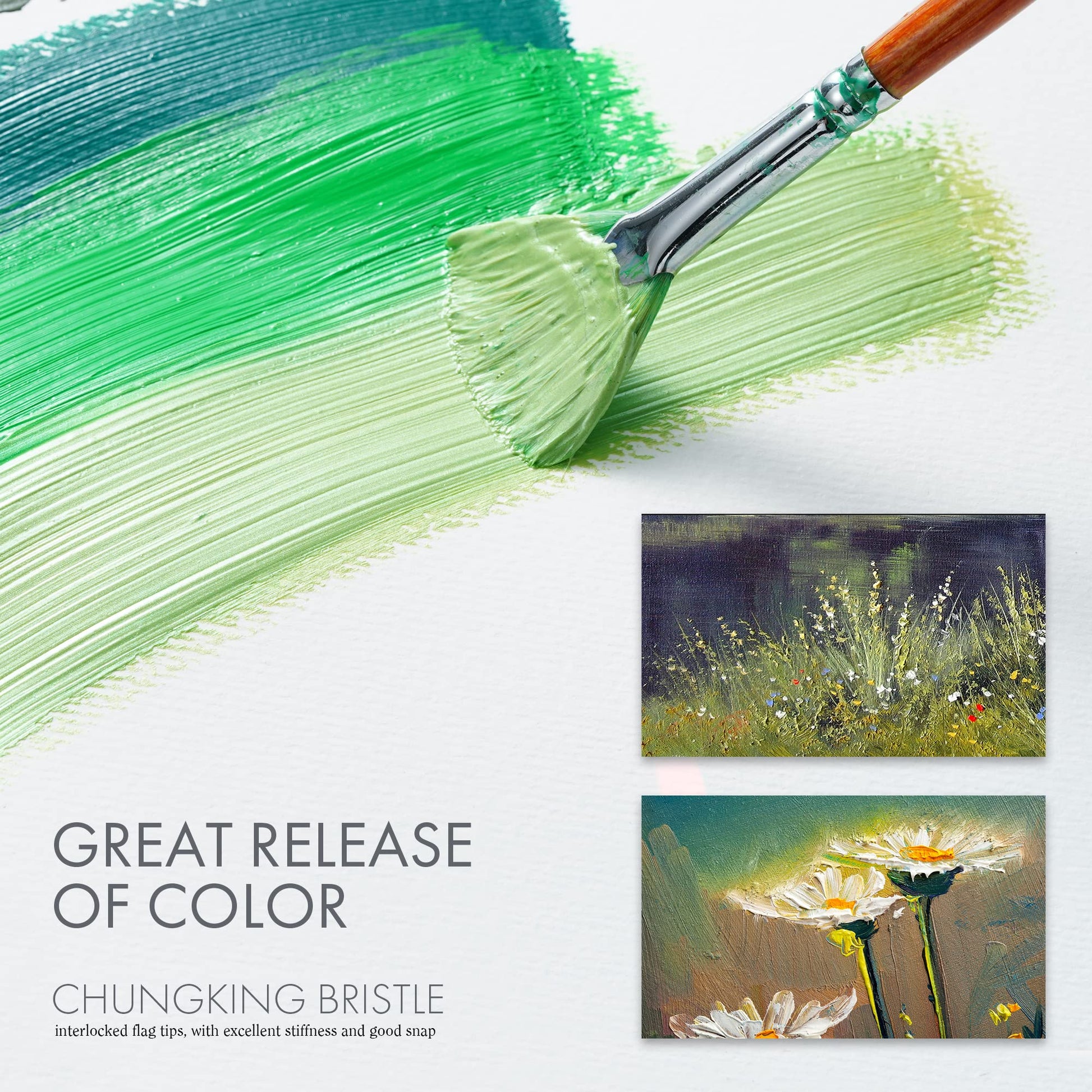 - 100% PURE HOG BRISTLES & NO SHEDDING - It's stiff and made for Oil Painting. The fibers are constructed with a blend of hog hairs that workers tied together and aligned by hand so that the hairs won't be left on the canvas while you are painting.