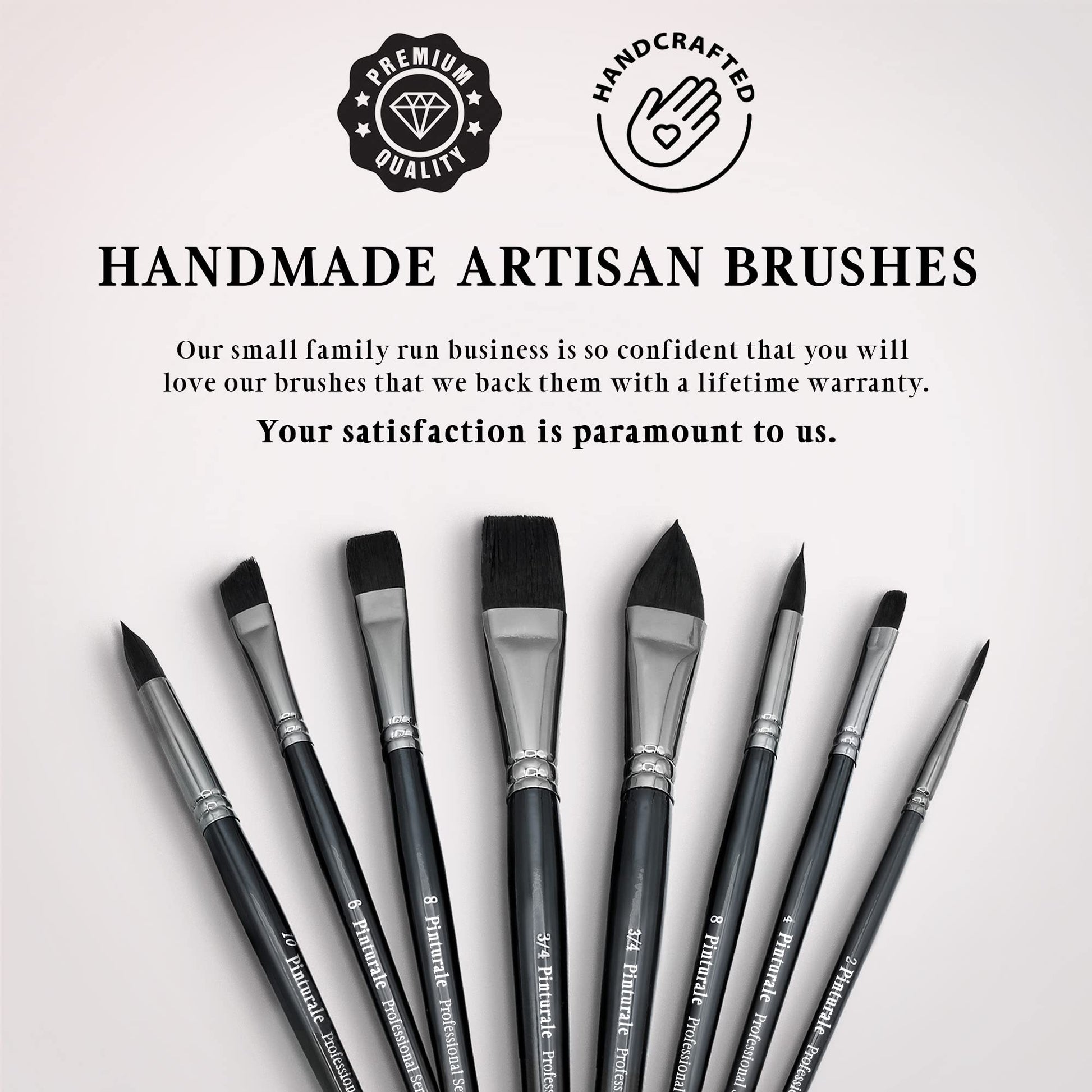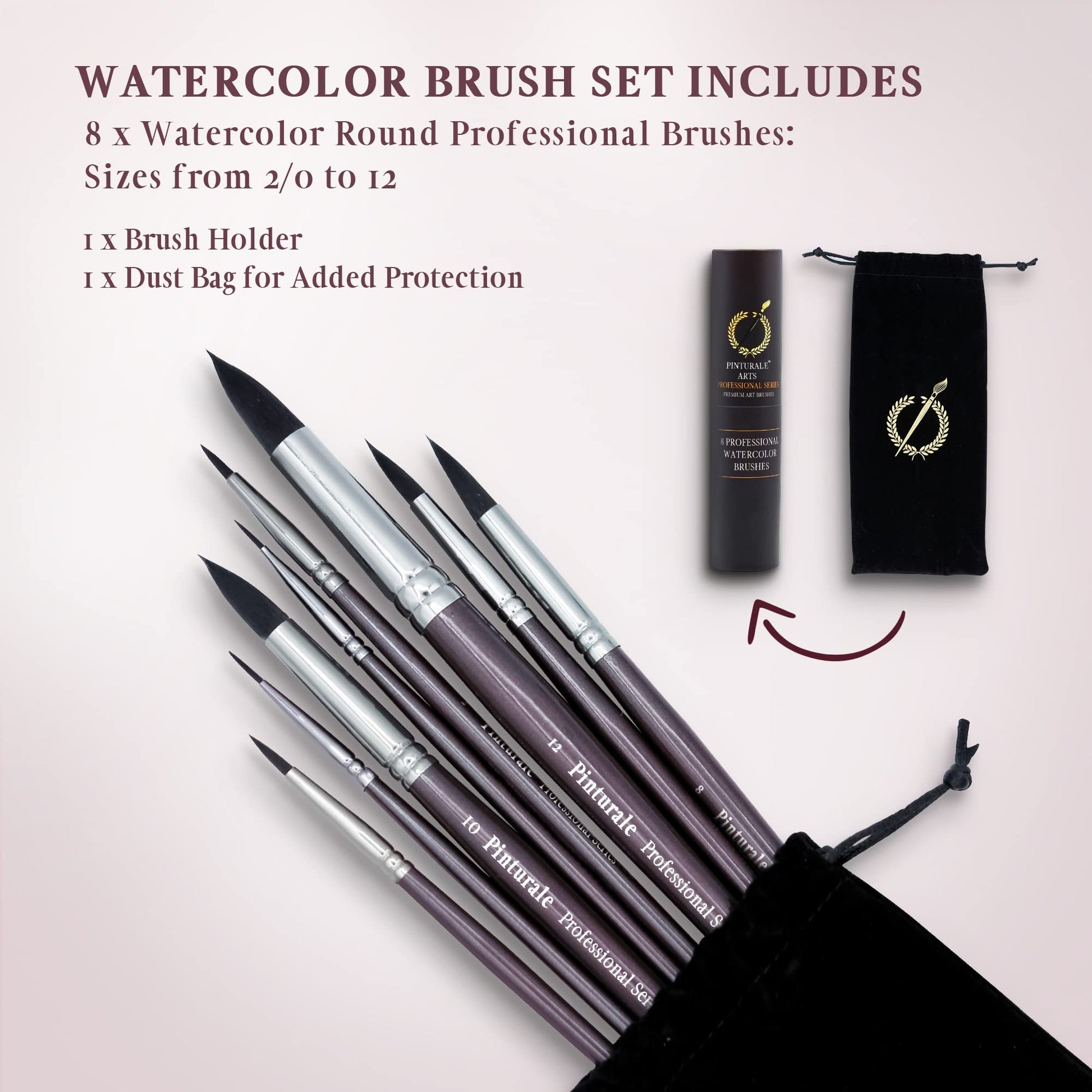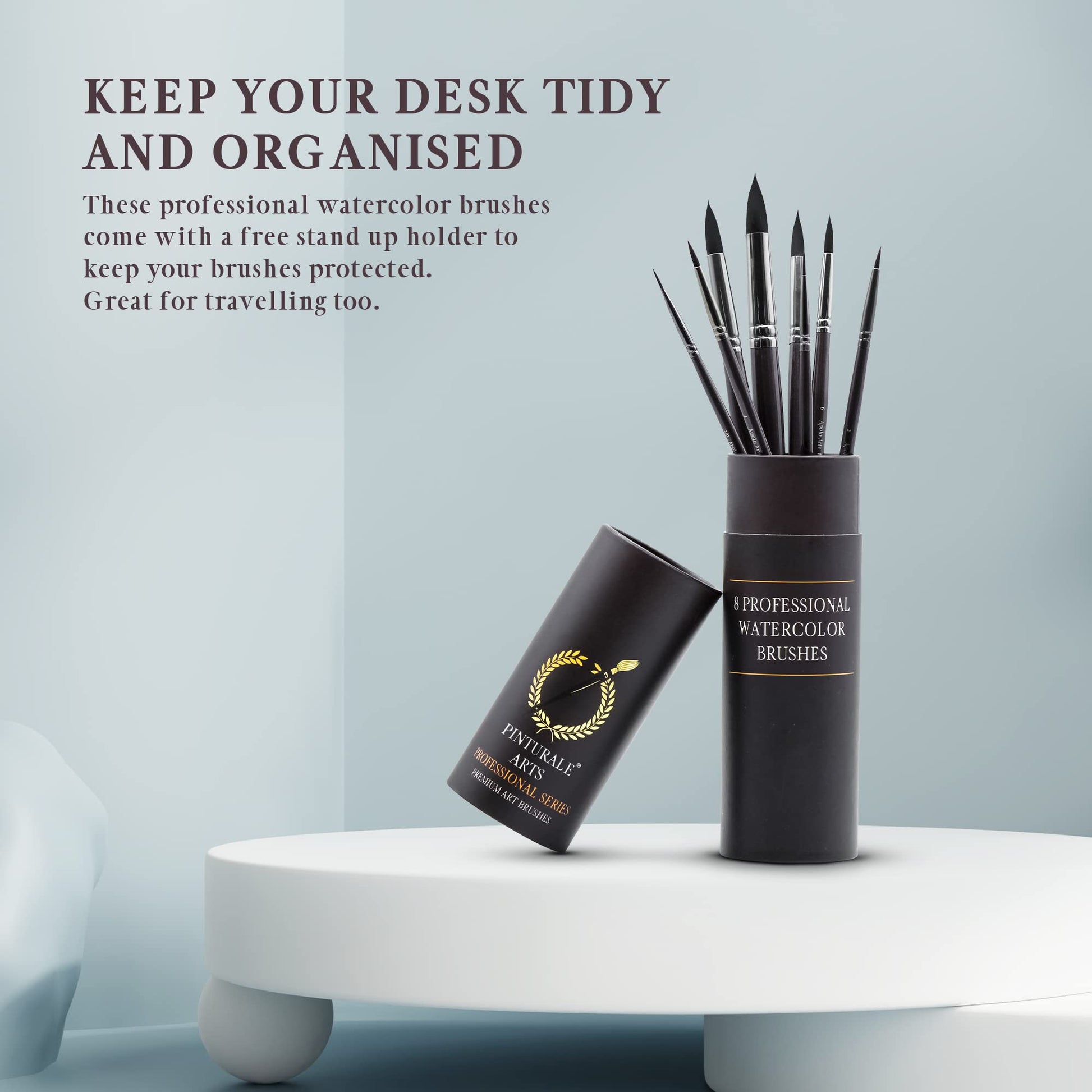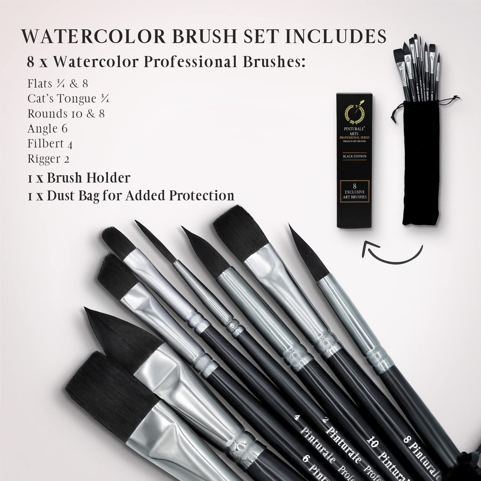 Pinturale Arts® Watercolour Brush Set for Professionals, Black Series, 8 Watercolour Brushes