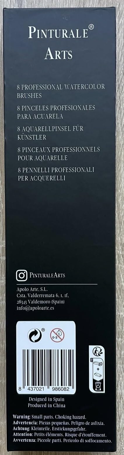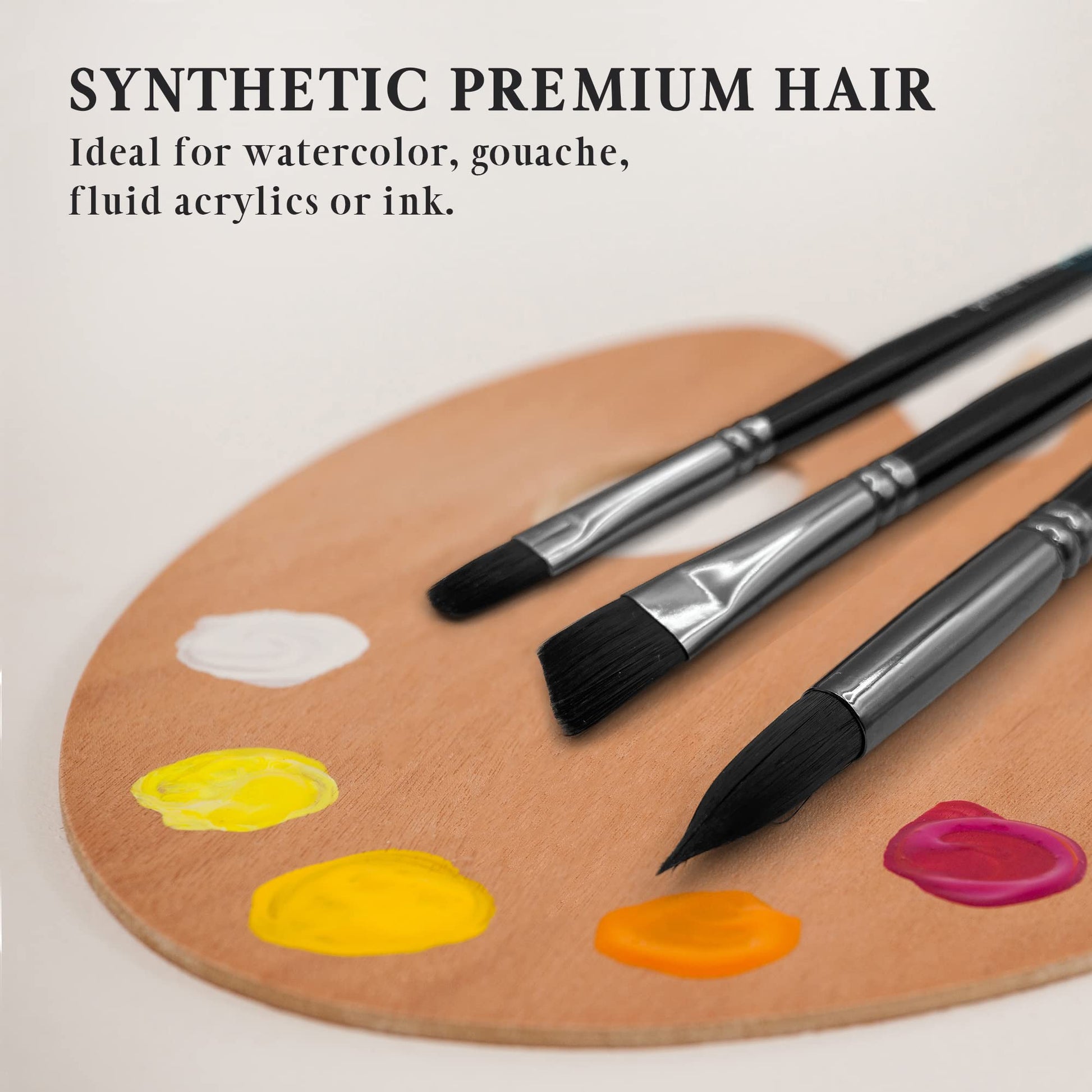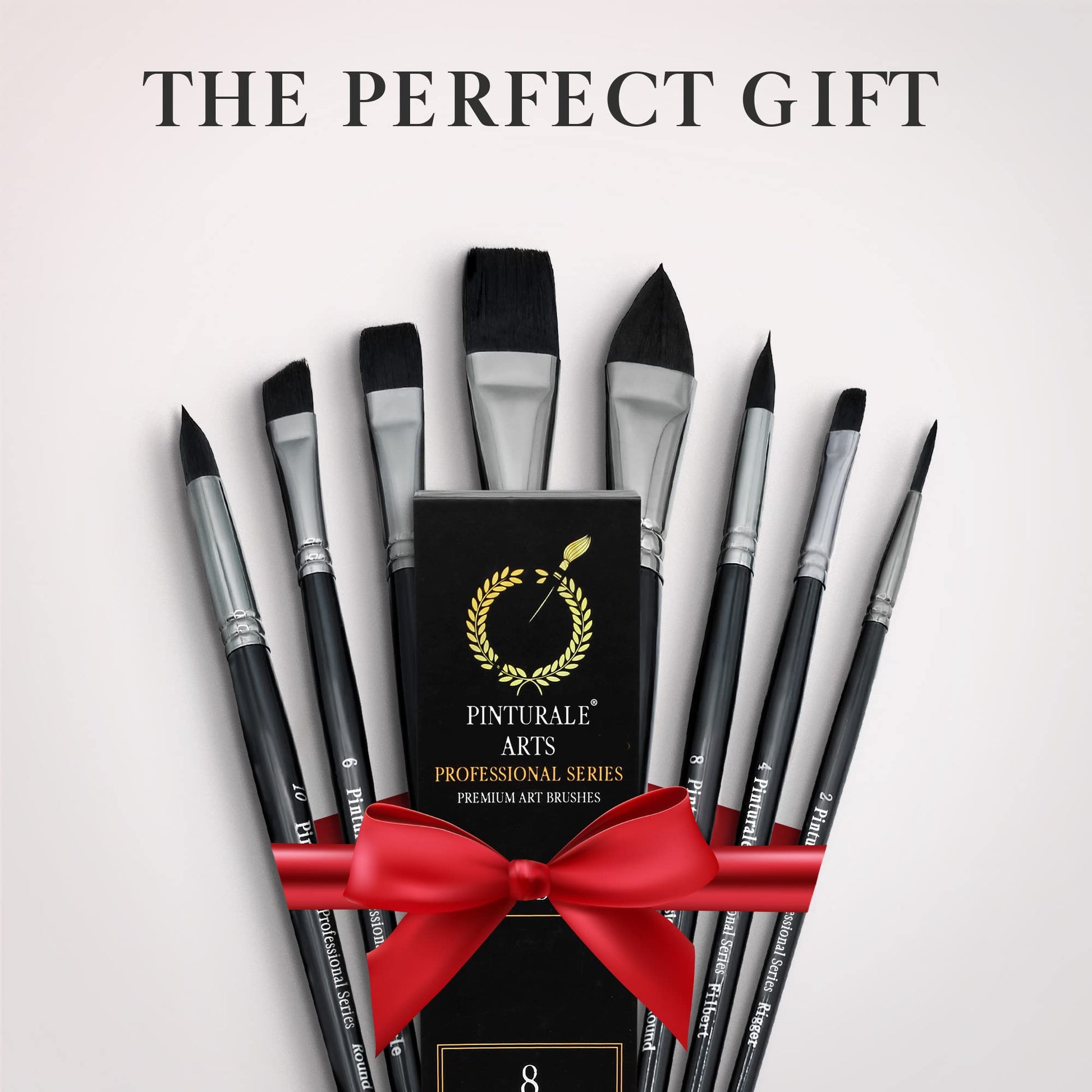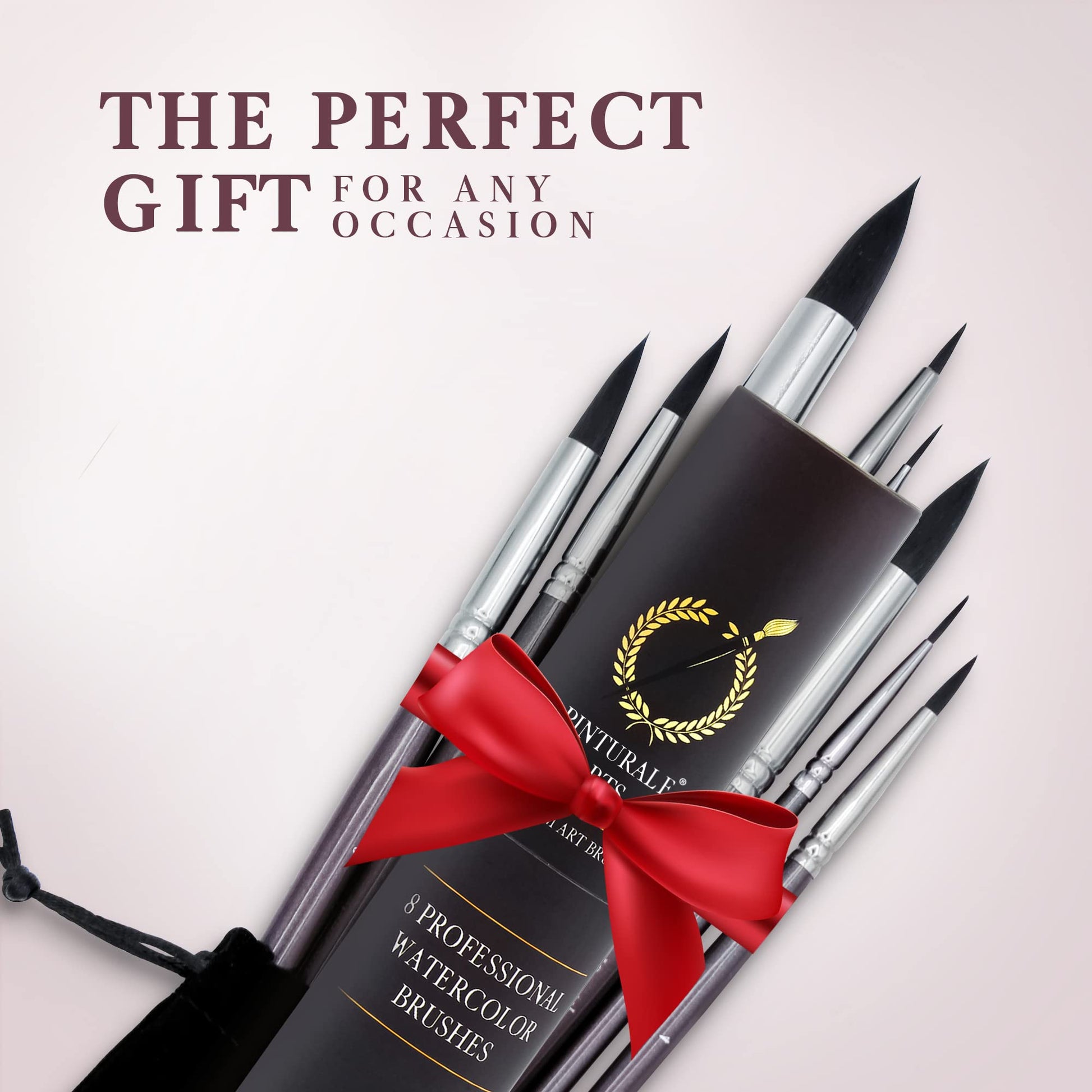 Pinturale Arts® Watercolour Brush Set for Professionals, Black Series, 8 Watercolour Brushes