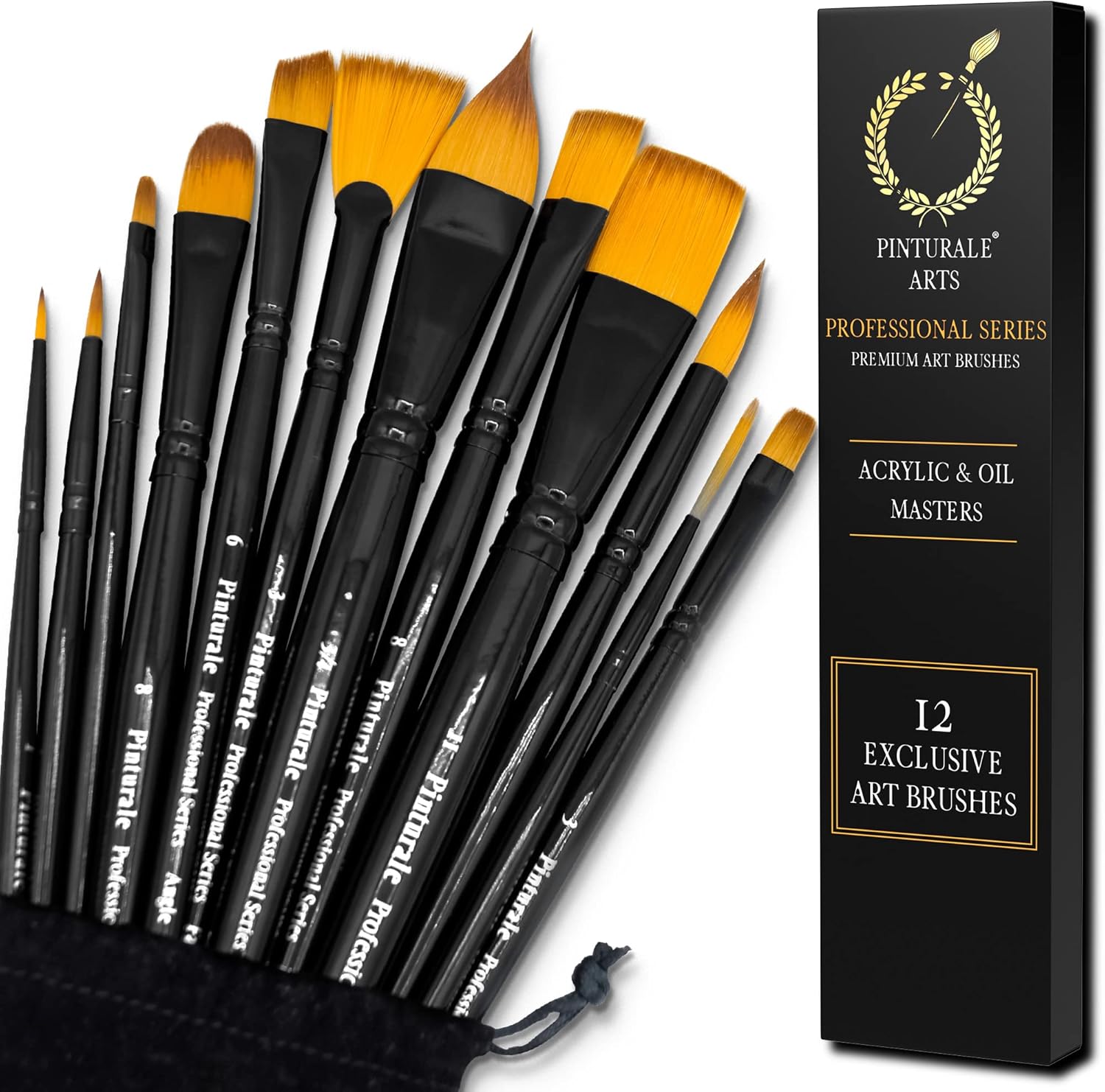 Pinturale Brush Set for Professionals, Acrylic & Oil Masters, 12-Piece Brush Set