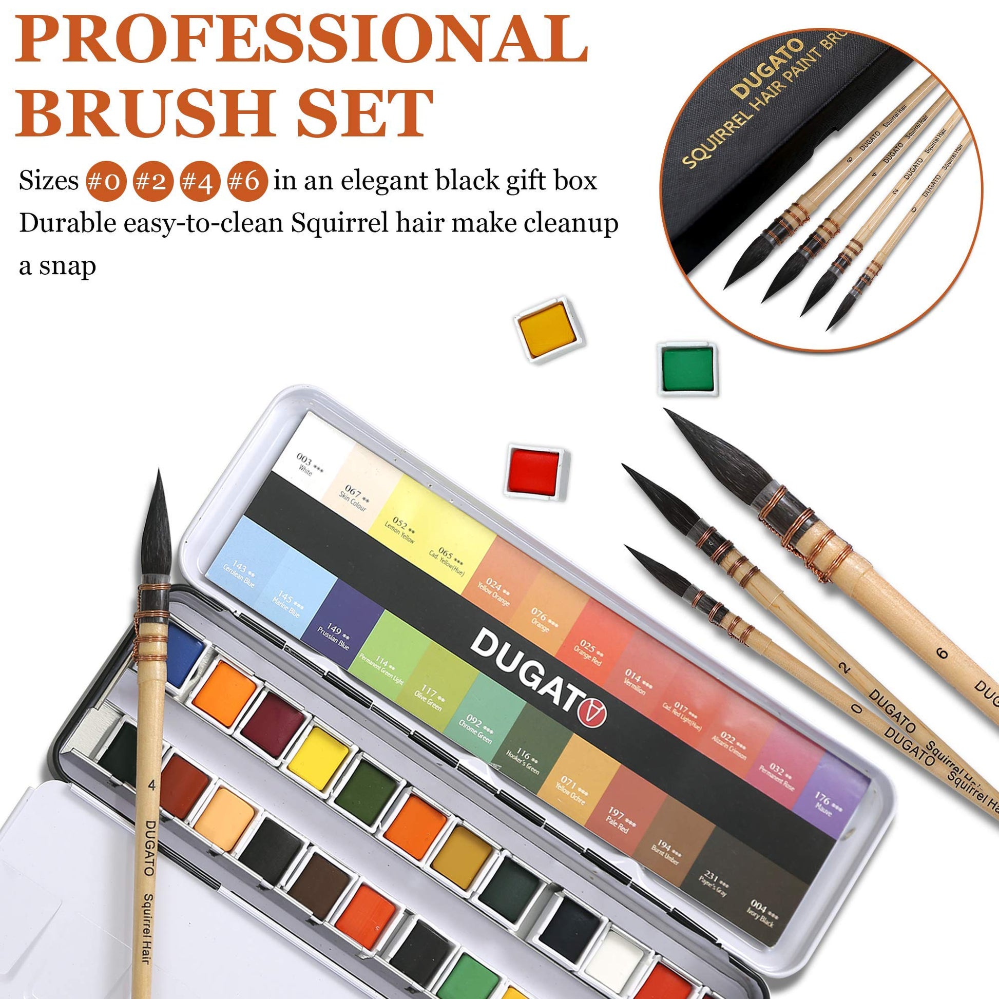 Professional Watercolor Squirrel Hair Paint Brushes by DUGATO
